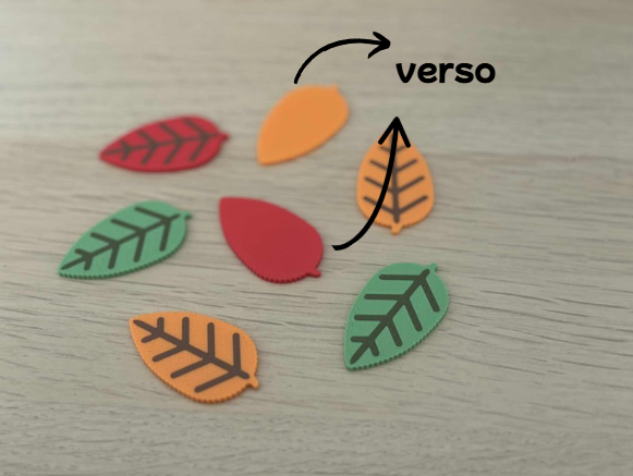 Ensemble de 25 jetons '' feuilles'' vert, rouge, orange , jaune et brun